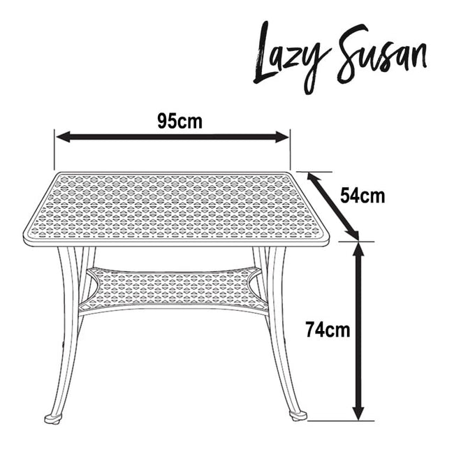 Notre table d'appoint BBQ est une table rectangulaire en fonte d'aluminium de qualité qui ne rouillera pas, ne pourrira jamais et peut être conservée à l'extérieur pendant toute l'année. Cette table est parfaite pour tous vos besoins d’accueil et de restauration en plein air et convient parfaitement aux grands groupes et pour une table principale possédant un espace limité. Utilisez-la pour y placer vos ustensiles de cuisine, vos salades, vos préparations de barbecue ou vos boissons et savourez un repas en plein air avec notre table d’appoint BBQ. Vous pouvez également mettre des fleurs et des pots sur la table et en faire un élément de composition du jardin. La table BBQ est également disponible en ensemble à 2 places pour ceux qui préfèrent utiliser l'espace de la table pour accueillir des invités supplémentaires.