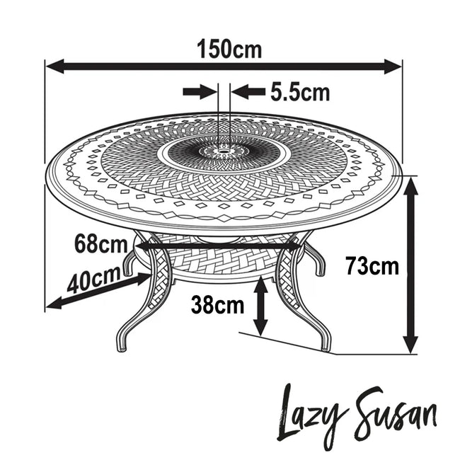 La table ronde Amelia de 150 cm est conçue en aluminium sans entretien et pèse environ 31 kg. Retrouvez-la sur les merveilleuses photos dans une large variété d’environnements variés. Il suffit de cliquer sur la photo principale en haut de la page. Cet ensemble nécessite 300 x 300 cm . Elle vous est livrée avec 8 chaises de jardin en métal de votre choix. Il y a suffisamment de place autour de la table Amelia pour organiser des dîners en plein air et inviter des amis ou des membres de la famille en plus. Vous pourriez par ailleurs arrêter votre choix sur notre ensemble Frances, notre meilleure vente des ensembles à six places.