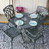 La table Anna 4 places est une belle table ronde de 80 cm de diamètre en fonte d’aluminium de qualité supérieure, ce qui la rend extrêmement durable et elle ne rouille pas. Revêtue de sa robe moderne Gris Ardoise, la table Anna est facile à assembler et à déplacer. Elle convient donc parfaitement aux jardins et terrasses aux dimensions plus petites. Faites votre choix parmi une sélection de chaises et de coussins élégants et profitez des accessoires à prix très réduits de la section « Cadeaux » pour personnaliser entièrement cet ensemble. Si vous avez besoin de quelque chose d'un peu plus grand pour votre jardin, arrêtez-vous un instant sur nos meilleures ventes June et Alice à 4 ou 6 places.