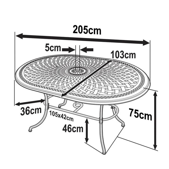 L’ensemble Catherine est constituée d'une élégante table ovale et de six chaises. Catherine est fabriquée en aluminium moulé durable et ne pèse que 30 kg. Comme toutes nos tables classiques, la table Catherine est très résistante aux intempéries et supportera sans difficultés différentes conditions climatiques pendant de nombreuses années. Le design de notre table Catherine est un favori de nos clients et le choix idéal pour tous vos repas en plein air.