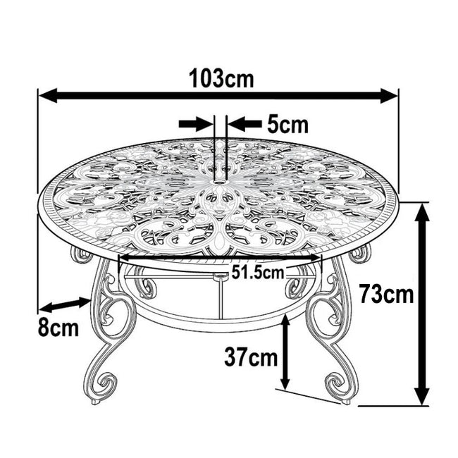 Le design unique de la table Flora apporte une touche d'élégance à votre jardin. Si vous souhaitez déplacer cette table dans votre jardin, modifier son emplacement s’effectue sans tracas, car celle-ci fait seulement 19 kg. Avec une circonférence de 103 cm, cette table ronde est idéale là où l’espace est primordial. Si vous souhaitez une table légèrement plus grande, prenez le temps d’admirer Joyce, notre table 6 places de 135 cm.