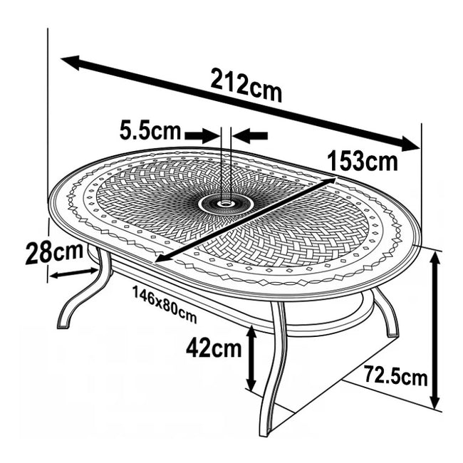 Créez un espace élégant et relaxant dans votre jardin avec notre table ovale Gloria à 10 places. L'ensemble est fabriqué en aluminium moulé de haute qualité et conçu pour pouvoir être laissé à l'extérieur durant toute l'année. L’ensemble est populaire parmi nos clients avec plus de 50 avis vantant ses mérites. Cette table peut tout à fait être utilisée en tant que 8 et 10 places.
