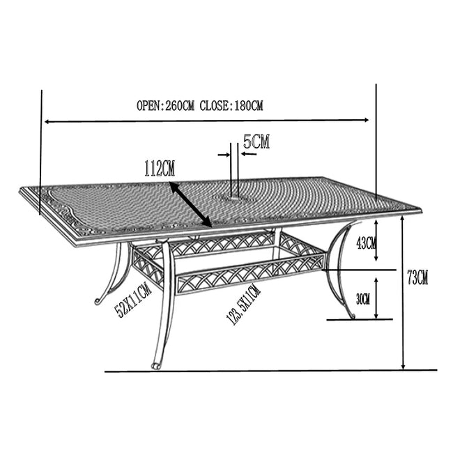 La table Vanessa 10 places est l’une de nos conceptions les plus imaginatives et dynamiques. Elle est dotée d’une fonction d’extension, ce qui signifie qu’elle peut être réduite à la dimension d’une table à 6 places ou agrandie pour obtenir 10 places. La table Vanessa est parfaite pour une variété d’espaces de patio et de pelouse en raison de la modularité de sa longueur. Elle ne rouille pas et ne nécessite aucun entretien. Invitez vos amis ou votre famille à prendre un verre ou un dîner en plein air dans le confort de votre table Vanessa.